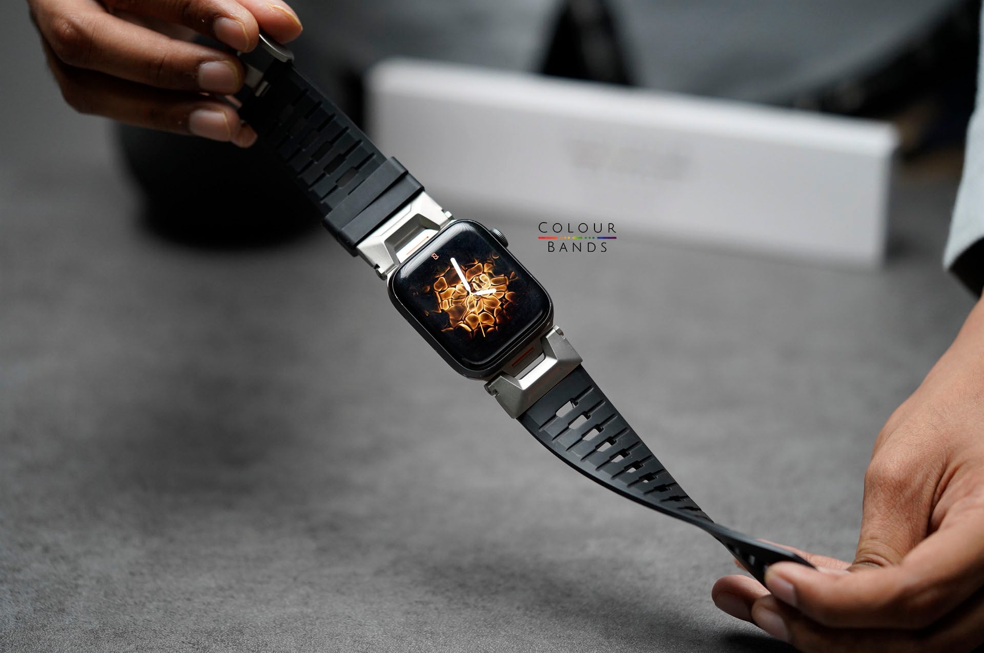Designed for active lifestyles, this FKM Motion Strap For Apple Watch 46/45/44 MM. is made from durable FKM rubber with a strong and lightweight titanium buckle. It’s comfortable, tough, and built to handle daily wear, workouts, or outdoor adventures.