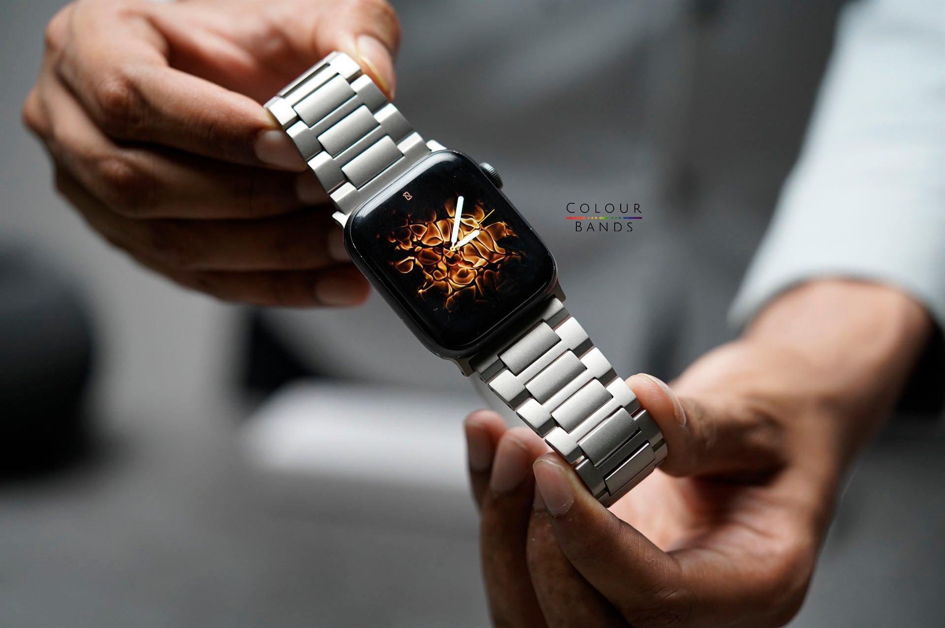 This Titanium Edition Band for Apple Watch 46/45/44 MM is crafted for those who demand both strength and sophistication. Engineered with a wider body to match the bold design of the 46/45/44 MM Apple Watch, this premium band delivers a seamless fit and a striking professional look.